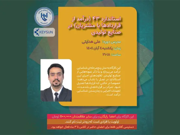 این کارگاه به مدل پنجمرحلهای شناسایی درآمد میپردازد و با ذکر نمونههایی از صنایع تولیدی تفاوتهای اجرای این استاندارد در عمل را نشان میدهد؛ خصوصا در حالتی که قراردادها تعدیل شود. تمرکز بر قراردادهای بلندمدت، تعهدات اجرایی و زمانبندی شناسایی درآمد است.
