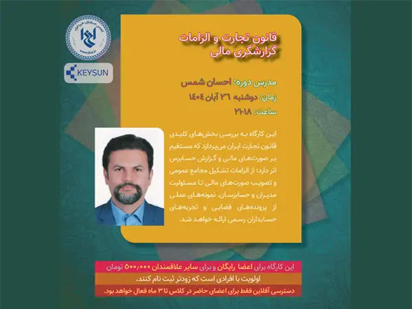 این کارگاه به بررسی بخشهای کلیدی قانون تجارت ایران میپردازد که مستقیم بر صورتهای مالی و گزارش حسابرس اثر دارد؛ از الزامات تشکیل مجامع عمومی و تصویب صورتهای مالی تا مسئولیت مدیران و حسابرسان. نمونههای عملی از پروندههای قضایی و تجربههای حسابداران رسمی ارائه خواهد شد.