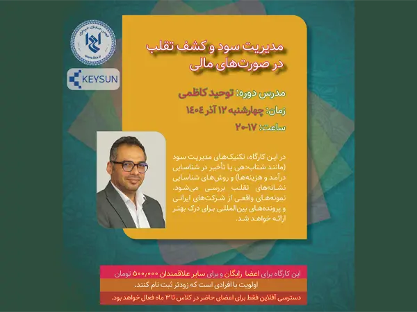 انجمن حسابداران خبره ایران با همکاری شرکت داده پردازی کیسان برگزار می کند: زمان: چهارشنبه ۲۴ دی ۱۴۰۴ ساعت: ۱۸-۲۱ مدرس: مهدی معین پور کارگاه روی موضوع حاکمیت شرکتی، کمیتههای حسابرسی و افشای اطلاعات تمرکز میکنه. تجارب بینالمللی (OECD Principles) در کنار مقررات بورس ایران بررسی میشه و نقش حسابداران رسمی در ارتقای شفافیت بیان […]