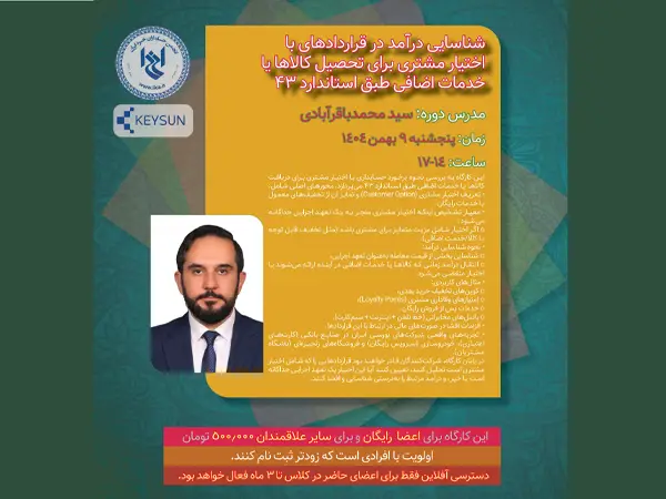 انجمن حسابداران خبره ایران با همکاری شرکت داده پردازی کیسان برگزار می کند: زمان:پنجشنبه ۹ بهمن ۱۴۰۴ ساعت:۱۴-۱۷ مدرس: سید محمد باقرآبادی این کارگاه به بررسی نحوه برخورد حسابداری با اختیار مشتری برای دریافت کالاها یا خدمات اضافی طبق استاندارد ۴۳ میپردازد. محورهای اصلی شامل:* تعریف اختیار مشتری (Customer Option) و تمایز آن از تخفیفهای […]